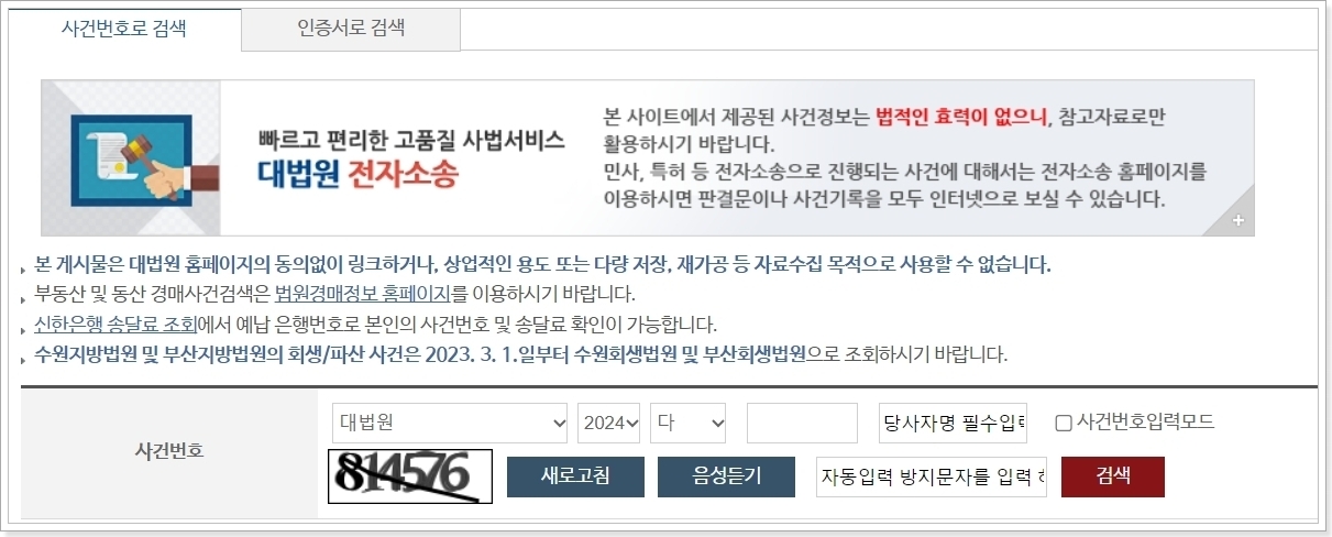 사건 검색 시 주의사항